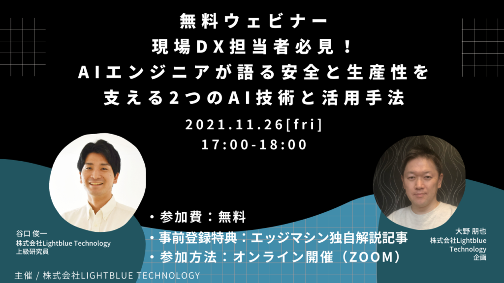 現場の安全性・生産性向上を目指したい、人の行動認識・解析に興味がある、DX・AI導入を検討している方々の参考となる情報満載。奮ってご参加を!