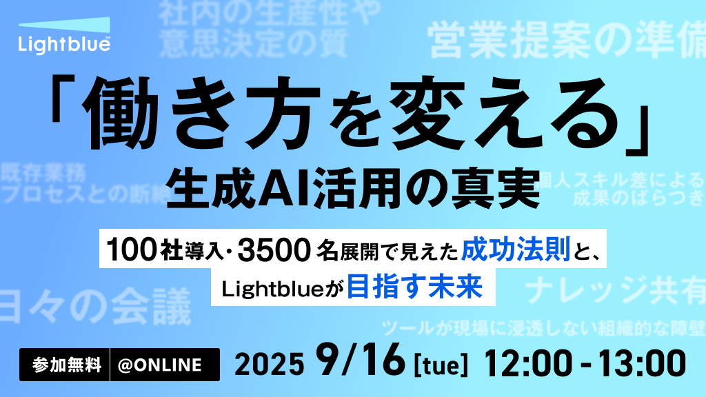 「働き方を変える」生成AI活用の真実〜自社実践と100社導入・3000名超の展開から見えた成功法則と“次のAIサービス像”〜 9月16日(火...